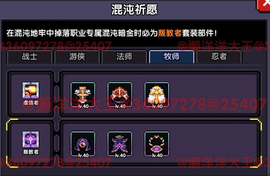 记得刷前在<混沌祈愿><混沌宝库>里面定轨离经叛道套装,牧师万金油套装就是离经叛道+吞火套,这里面有一个会送百变混沌,所以我们刷另外的五件就行了