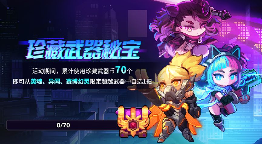 -“宝箱”限定宝箱,能抽到最新的限定武器,优先把赛博系列的“粉红毛毛兔”和“浅蓝茸茸猫”做出来,属于比较通用型的搭配