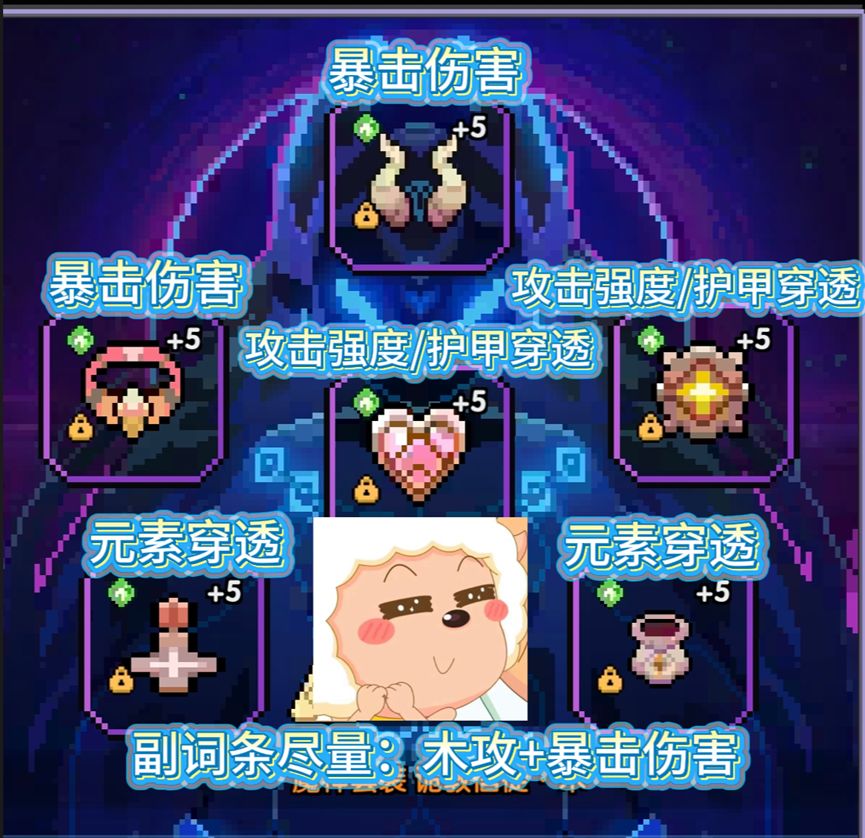 -后续用橙色以上品质选择的词条尽量有:木系压制+伤害增幅