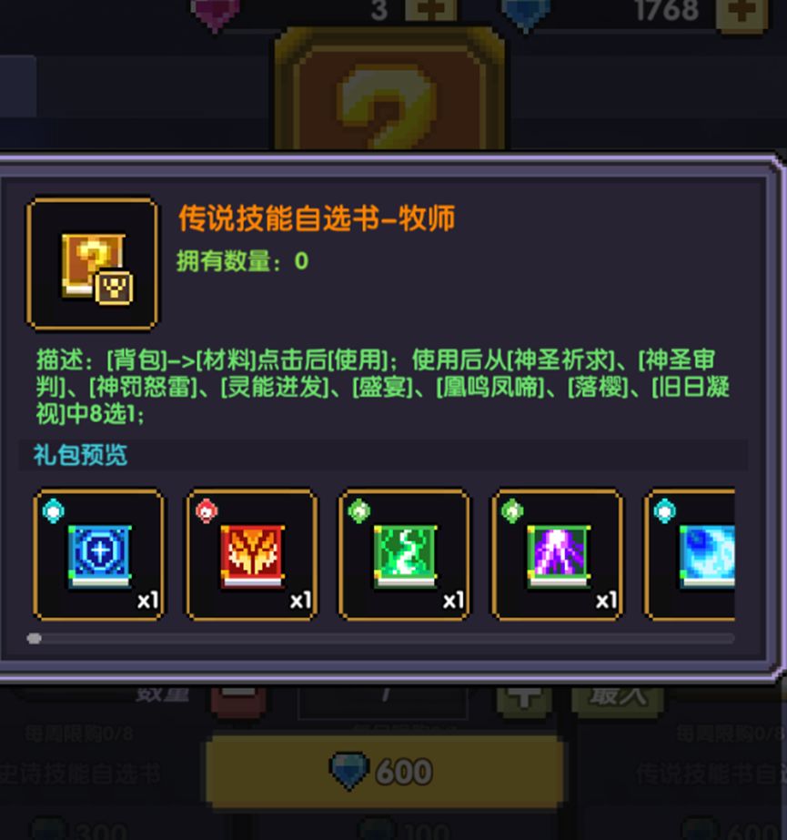 4:“商城”可花费100/600钻石分别购买光芒冲击和神圣审判