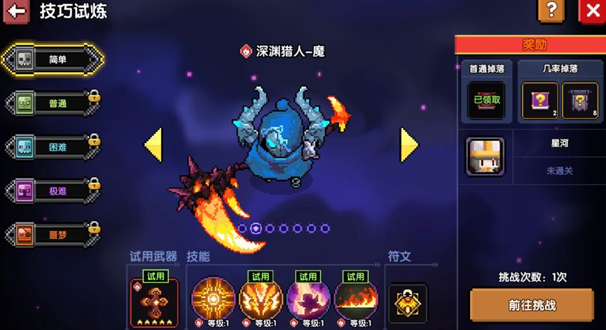 3:日常玩法的技能试炼,关卡“深渊猎人-魔”首通奖励获得