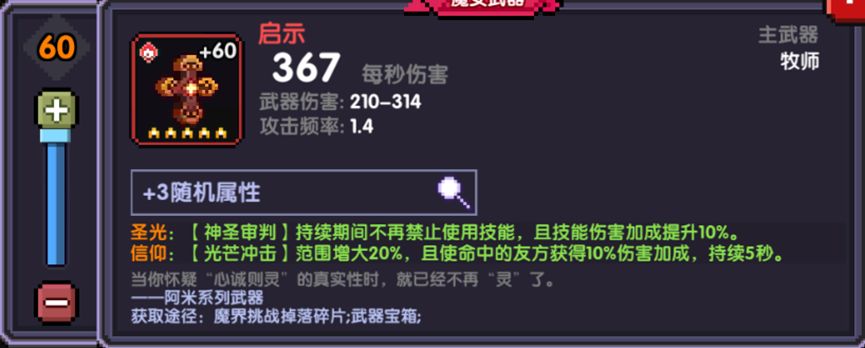 牧师的开荒武器选择上,我推荐:阿米系列的【启示】,平滑过渡前期的开荒期