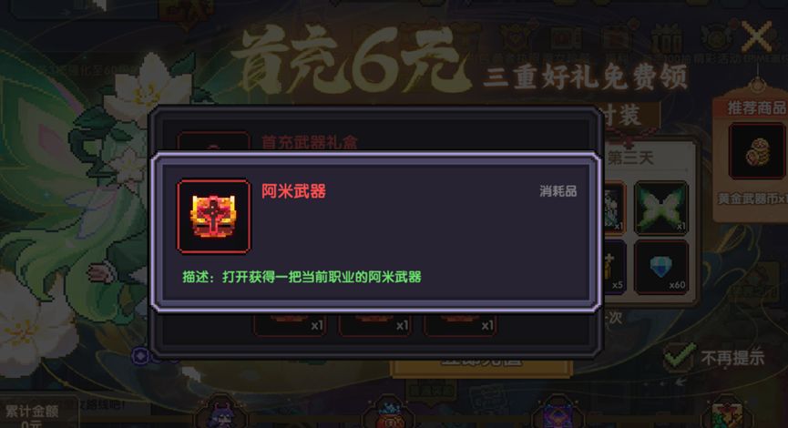 ②首冲礼包,武器礼包开启后自动识别本职业给武器,选择【阿米】魔女的宝箱