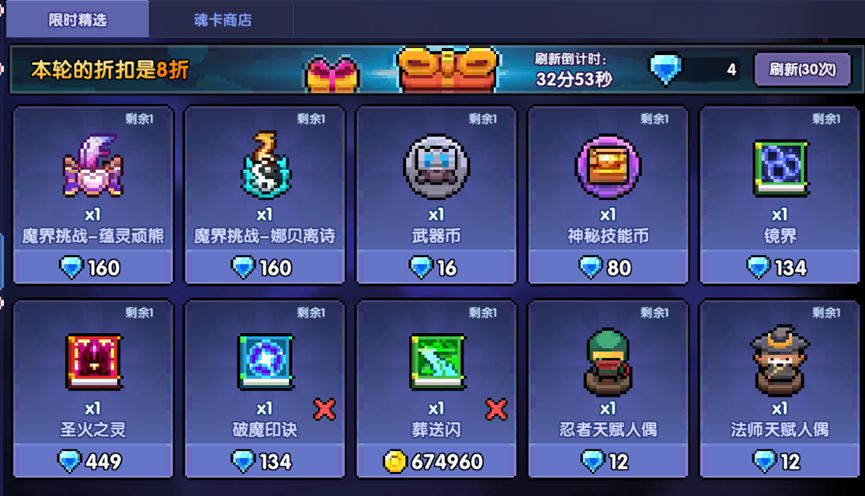 2:“商城”内的刷新商店有概率获取(尽量只用金币购买)