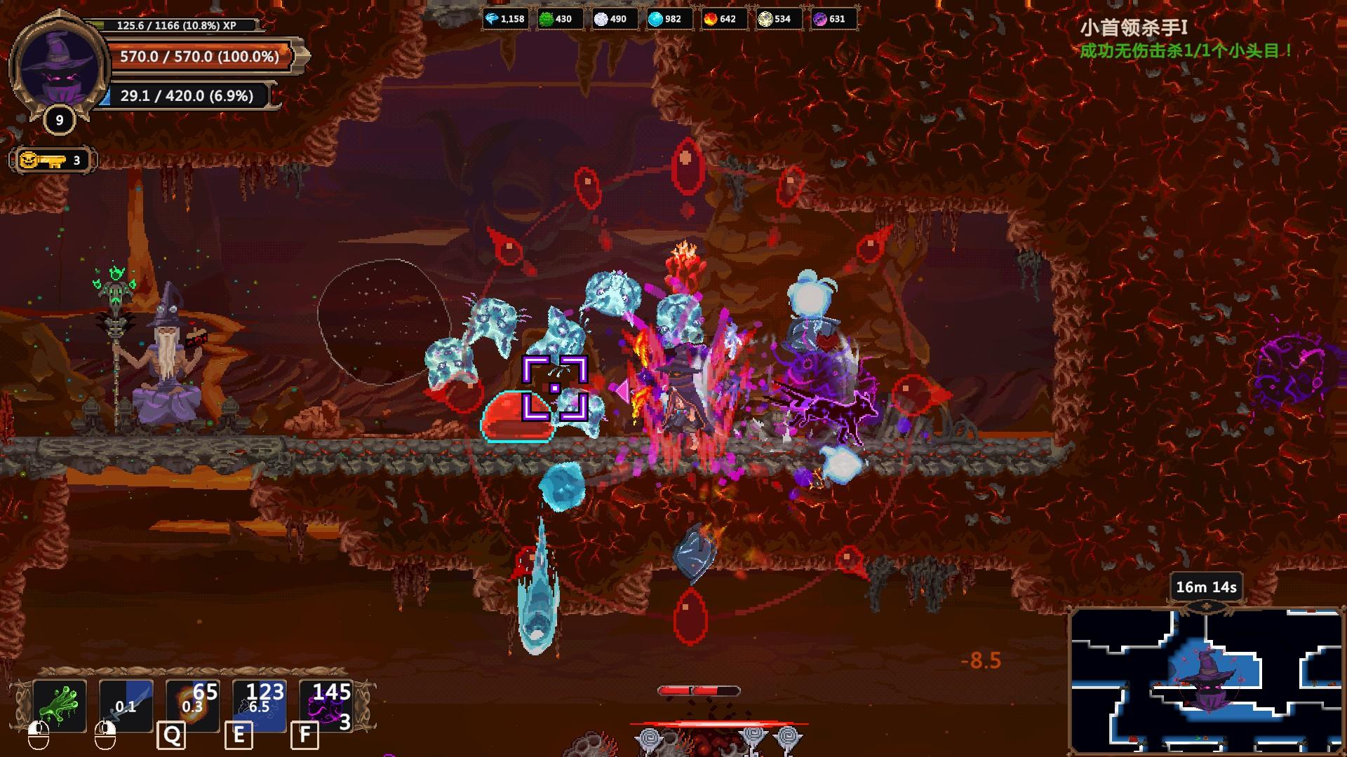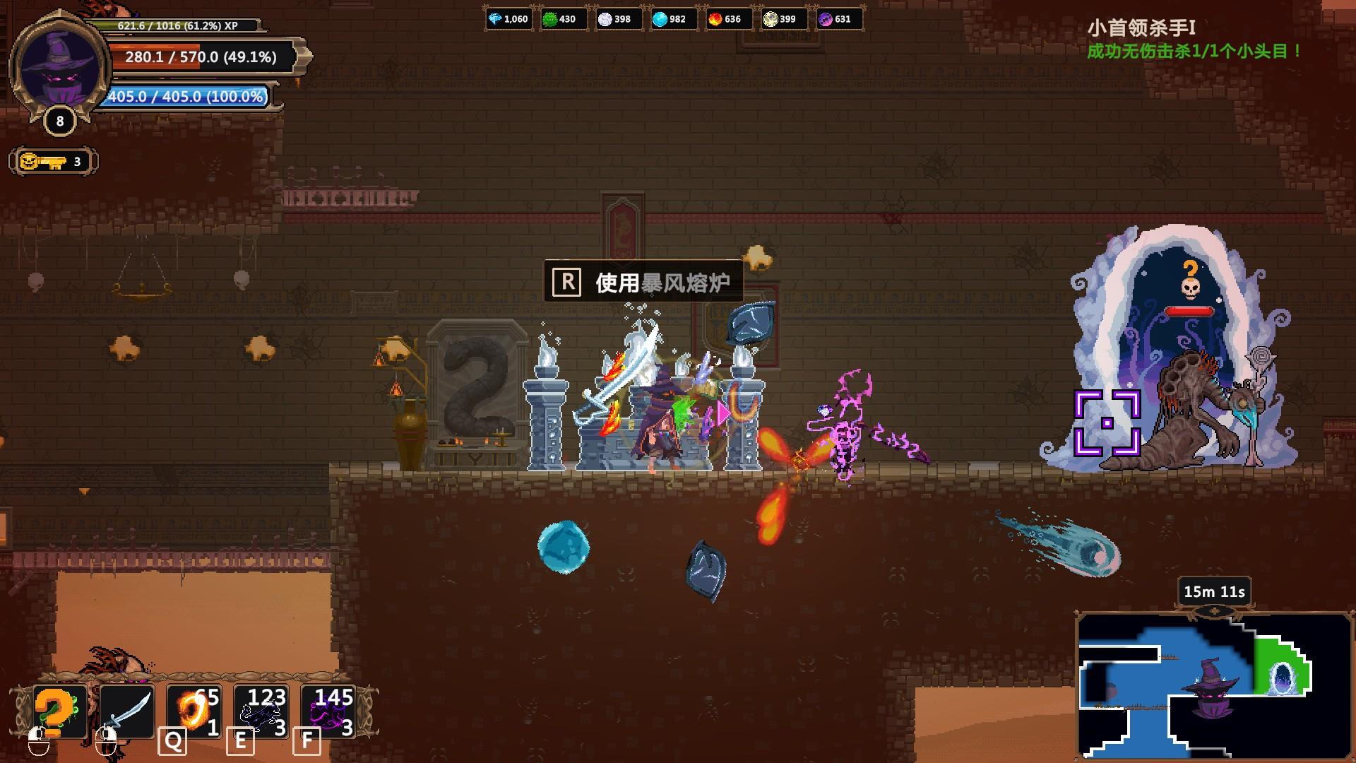 像素画风的随机地形让每次冒险都变得不一样,地图设计上有着很多机关与保险,各种各样的怪物以及小首领和大BOSS,操作上也结合了一定的动作元素,最独特的机制就是法术融合的设计,让你可以打造出独特的三星甚至四星法术装配使用,配合神器环绕周围,形成眼花缭乱的视觉效果,而局外的成长也需要探险或是死亡回归后,使用特有资源去修复解锁,升级需要的技能树或是特色元素的强化与天赋等等,逐步变得更加强大,游戏目前还在EA阶段,完成度较高,推荐!