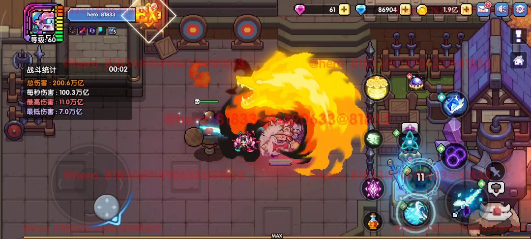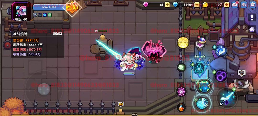 1、正常操作:普攻连点→点紫技能→点橙技能→4秒后刷新橙技能→橙技能→3秒后刷新紫技能和橙技能→紫技能→橙技能→循环