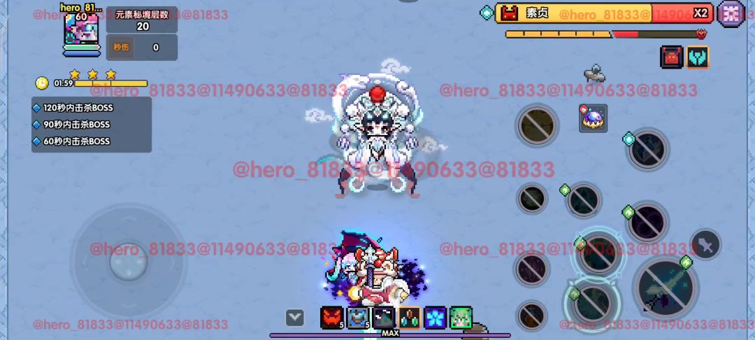 1、大秘境对王,输出非常稳定,需要对轴,就是控制技能爆发时间多和血瓶、疾跑、魂力爆发、觉醒、奥义的时间重合,具体轴可以参考攻略,或者自己根据自己实际成绩去略微调整。
