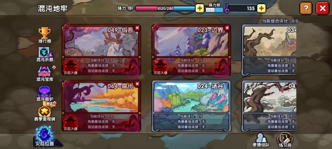 这时候体力优先去刷混沌地牢在刷到一套混沌特性3级的装备后