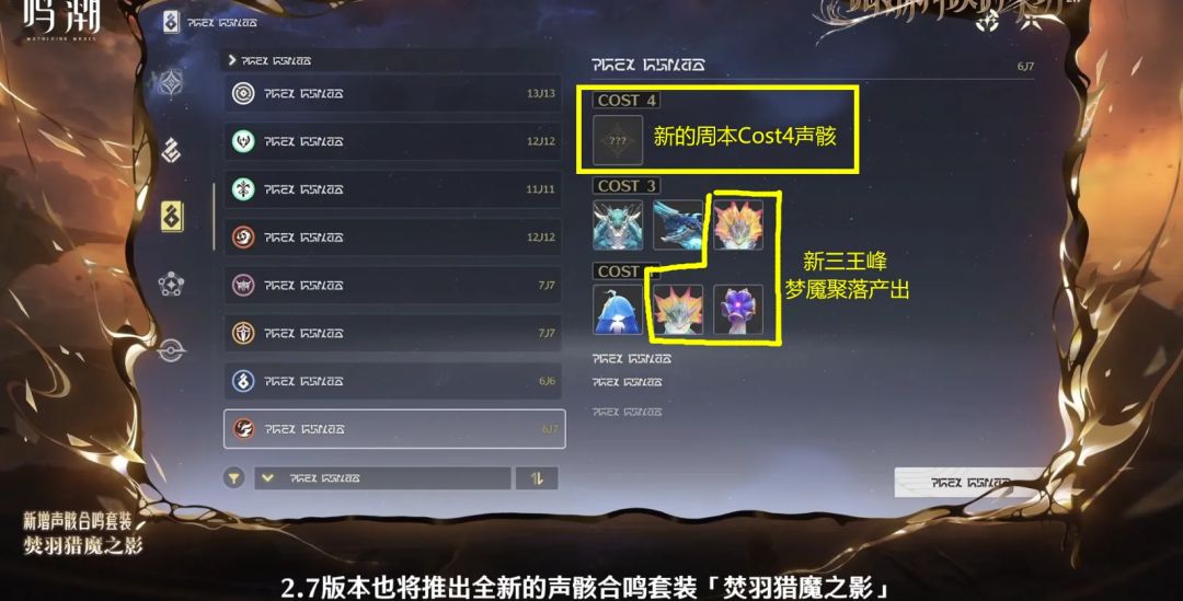 【1个新套装的梦魇祓除(位于三王峰)产出3种新梦魇声骸】;
