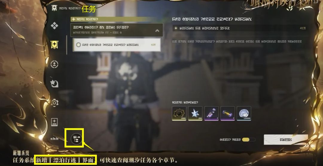 任务界面新增【漂泊行迹】,可以看到主线剧情的不同章节与指引,