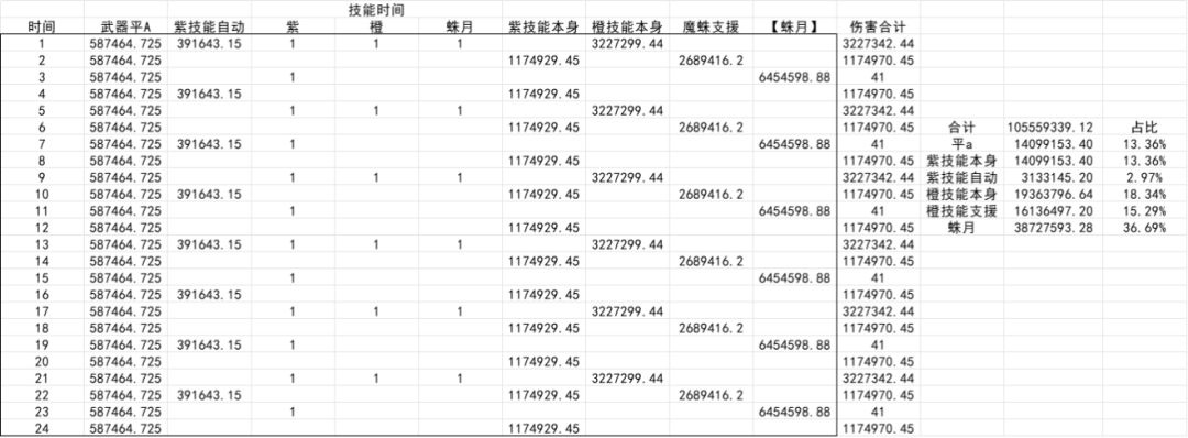 至于第一点,在测试过程中发现,如果想贪第12个蛛月,那么提前2秒释放,会导致第一个支援和蛛月吃不到什么buff,伤害少太多。