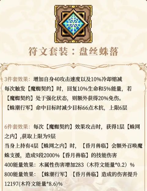- 【蛛潮行军】每只魔蛛总伤提升至5000%,且第一次释放后,每3秒自动召唤1只魔蛛。