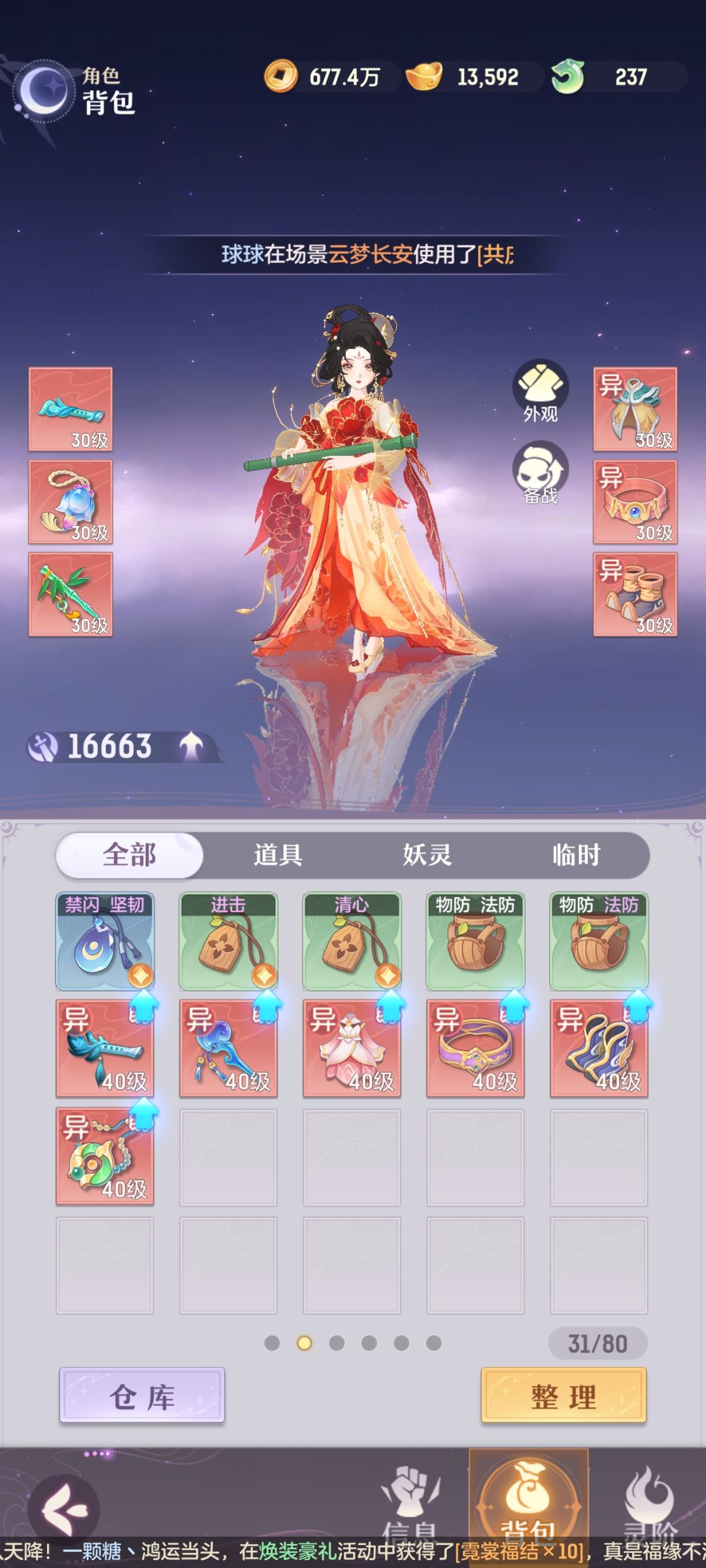 (6)乘风服会送40级异化装备,所以大家不用花元宝去打造了,本来也在30级就待不了几天,获得的器灵全都卖了就行,还能搞点元宝买其它资源;然后就是60级装备无损直升80级,也可以省一大堆材料,也挺好的!