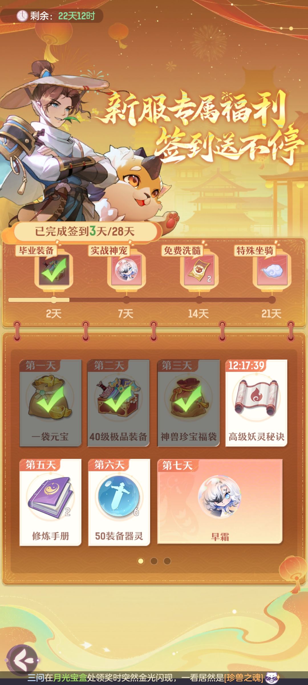 ),然后在用元宝学点技能(鬼市看到三万那个高级技能书非常建议买,因为大概率都是好的,会回本),早霜在早之前是要用一千积分换的,这里可以白嫖,非常nice!同时早霜的伤害也非常高,非常值得培养!(5)神兽岛,天选之人的地方,在这里有可能白嫖到神兽,只是概率非常低但不是0,希望我可以成为一次天选之人!