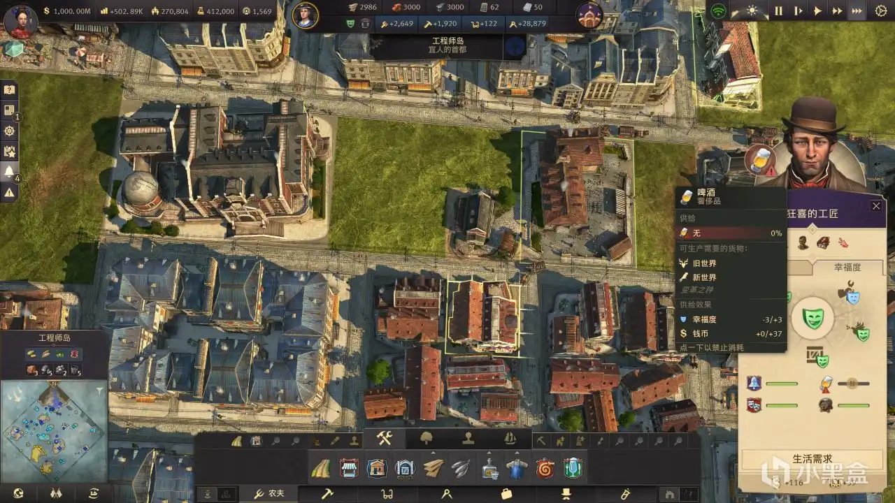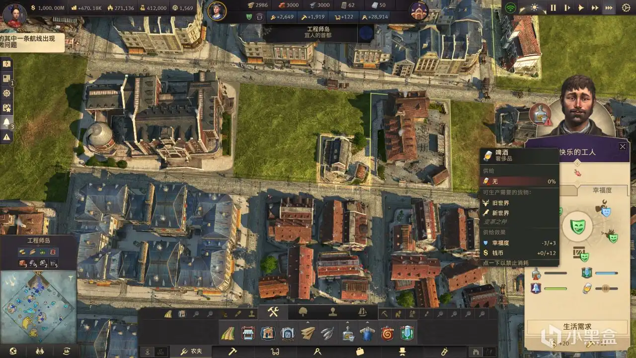 说回啤酒花,首先是最简单的方法,直接占领拥有啤酒花的岛屿。这种分岛不用生产别的物品,只用来生产啤酒花和啤酒。因此先摆好和啤酒有关的产业,再把居民房子拍下去。