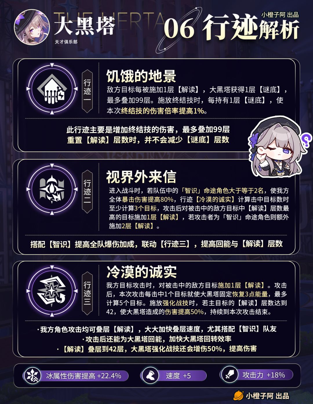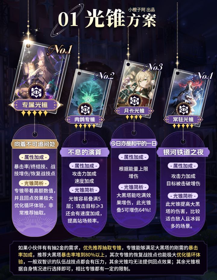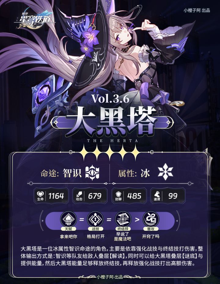 哈喽喽,这里是小橙子阿,本期是大黑塔复刻攻略!本篇将用图文形式翻新了大黑塔的光锥、星魂、遗器以及队伍搭配,详细版可查看之前大黑塔详细攻略~