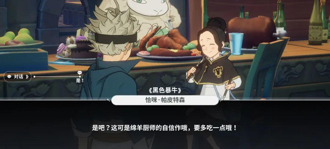 最后最后!就让恰咪我来自我介绍一下吧~我的魔法是超——实用的绵魔法,能变出「绵羊厨师」🐑随时随地做饭,它们做的料理不光好吃,还能帮大家恢复魔力。要是敌人来了,或者有人抢我吃的...(身后的绵羊厨师突然露出凶狠的眼神
