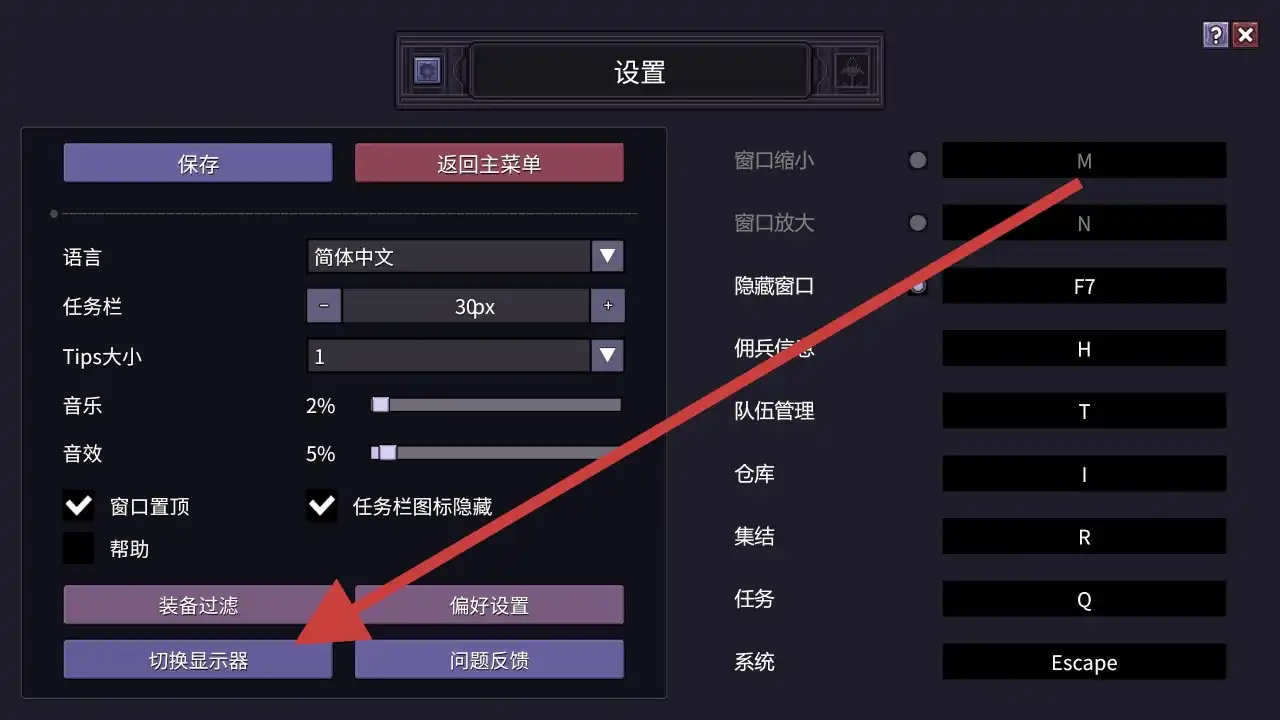 游戏开始先讲一下,如果你拥有两块显示屏,或者是笔记本外接显示器,那么可以在设置中将游戏窗口转移到另一块副屏