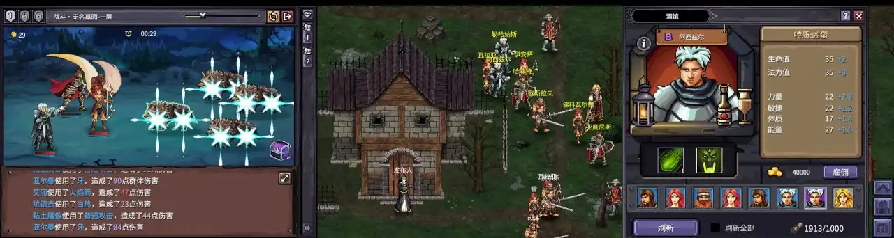 雇佣酒馆(角色,随着等级提升会有更高品质的佣兵)等等