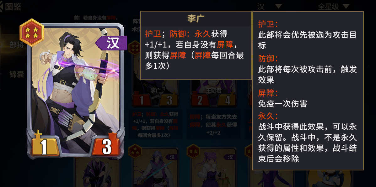 - 【李广】:防御手,凭借独特的套盾和成长机制,成为不逊于秦琼的优秀盾墙