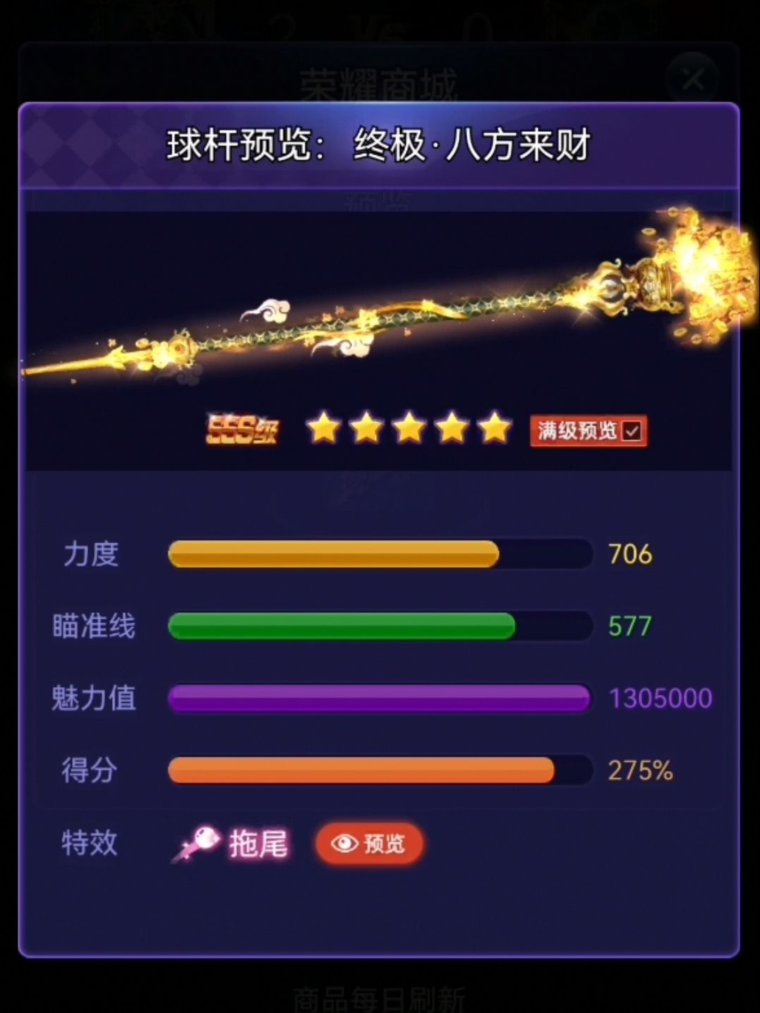 力度706,瞄准577,魅力1305000