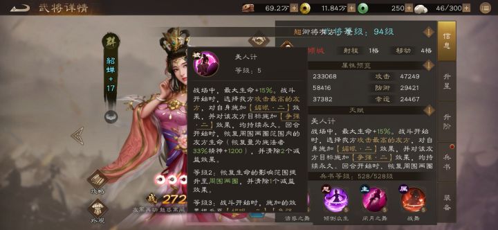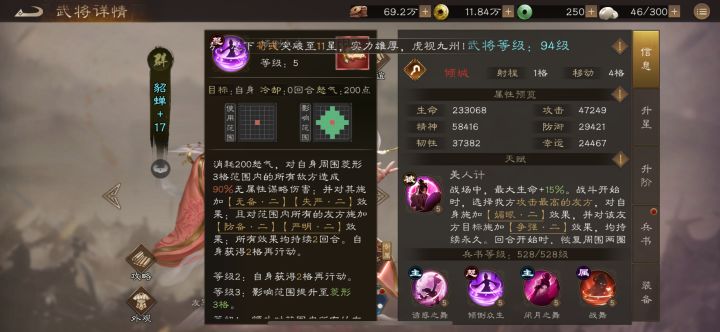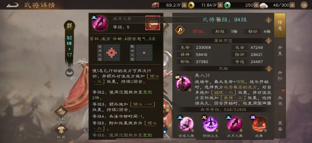 · 最佳搭档:貂蝉的理想队友是高攻击的男性核心武将,如吕布、关羽等。她可以通过天赋大幅提升这些武将的攻击力,并用“闭月之舞”为他们提供额外的行动机会。
