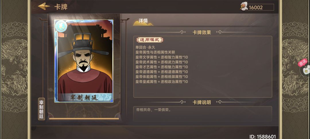 卡牌开局丞相为史弥远且无法更换(如有策卡群贤毕至可直接换掉史弥远消除负面buff),会增加天灾概率,减忠诚、减皇威。通篇看下来卡牌负面效果还是比较多的,存在军事debuff,灾害、属性等负面,还有消灭势力任务,所以对策卡储备的要求就比较高,比较依赖一些强力军事策卡和锦卡牌。