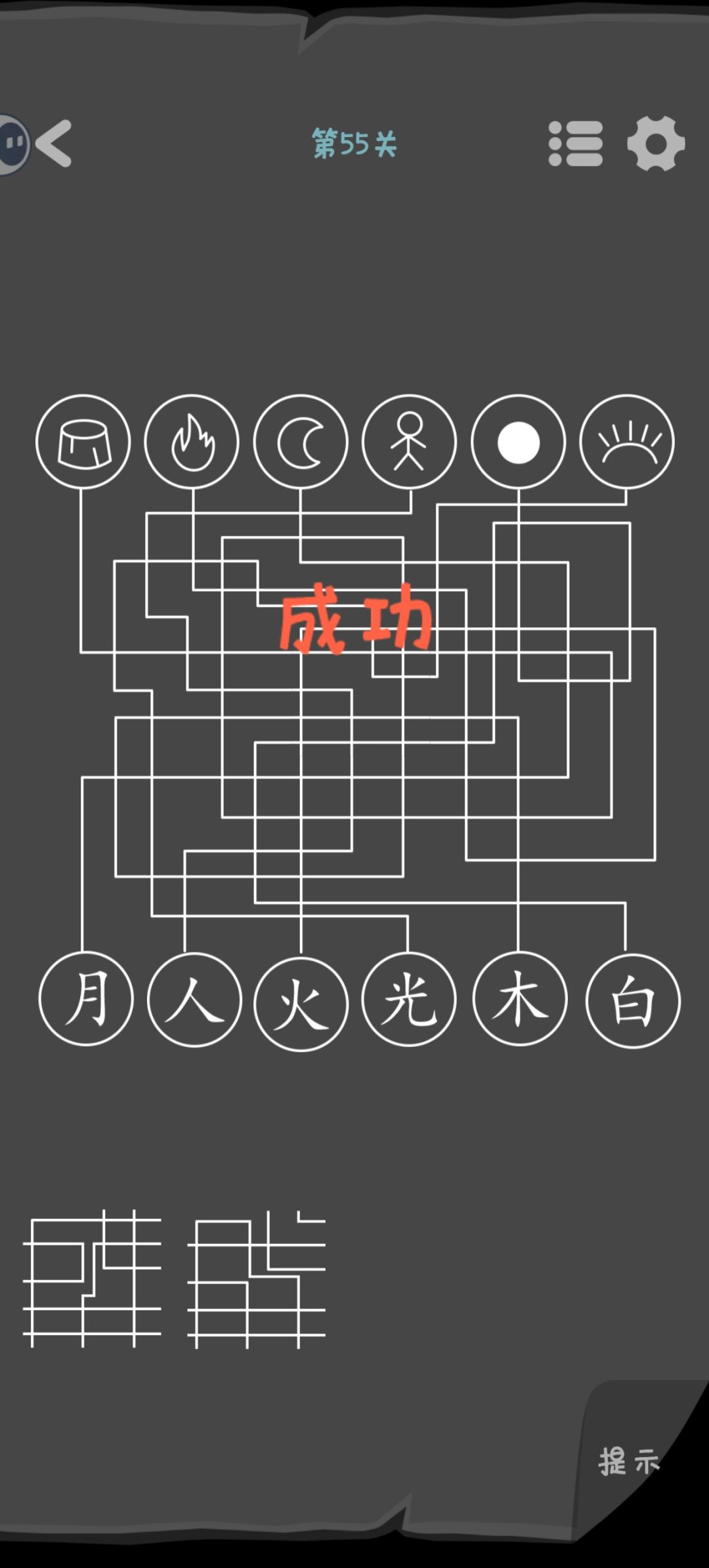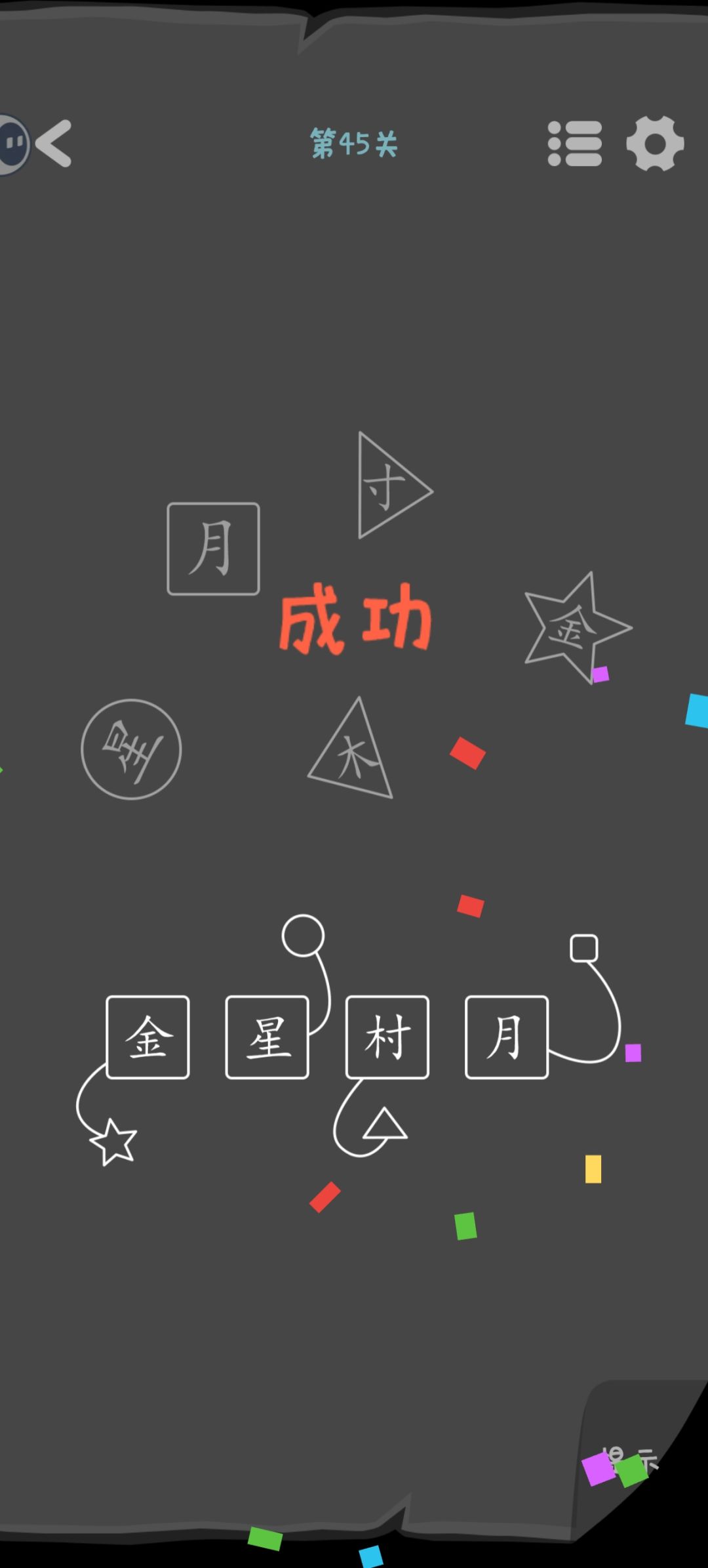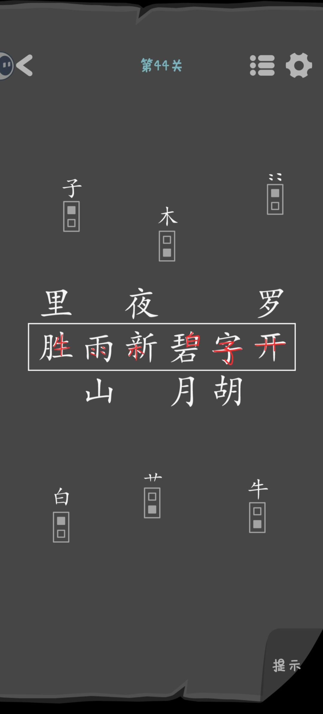 第44关 白色实心的是要放在横框里的汉字。