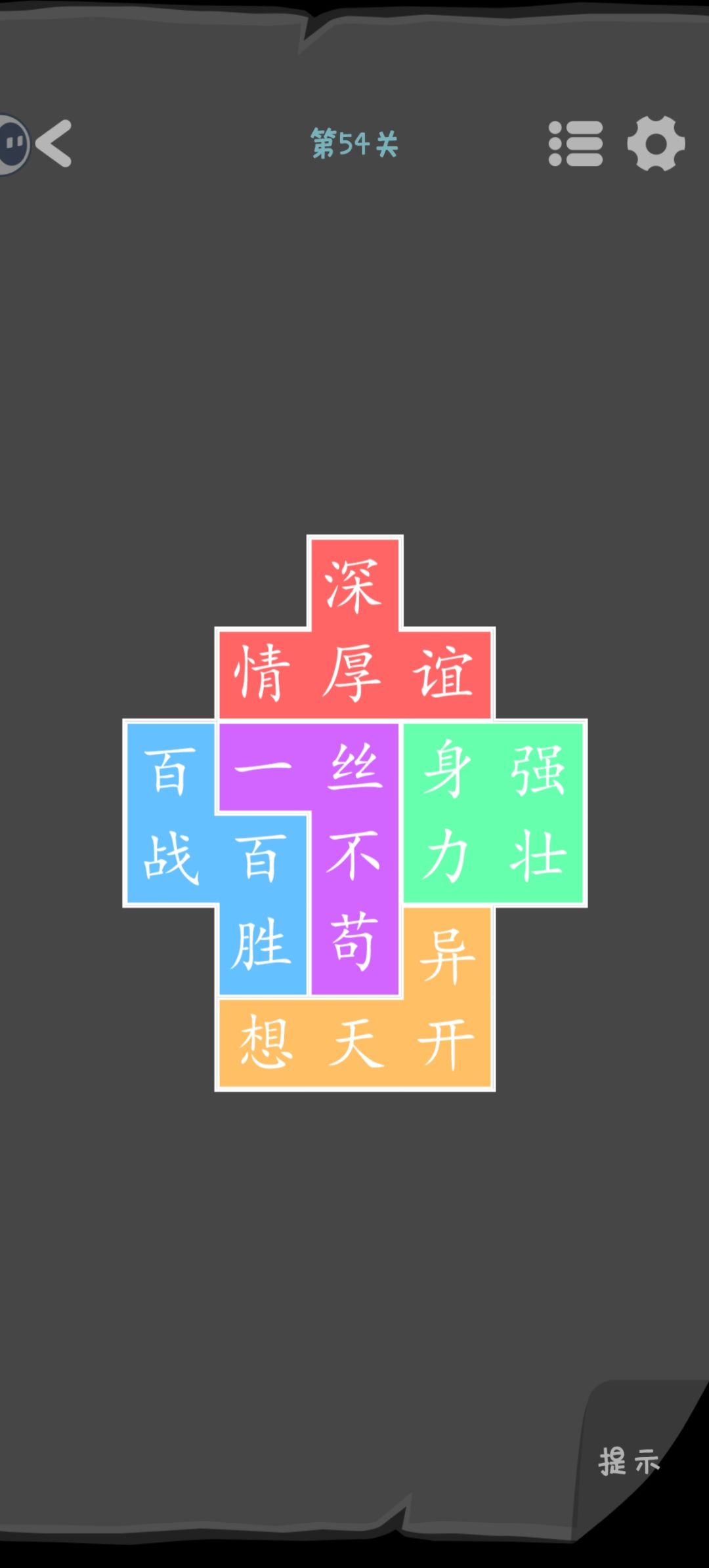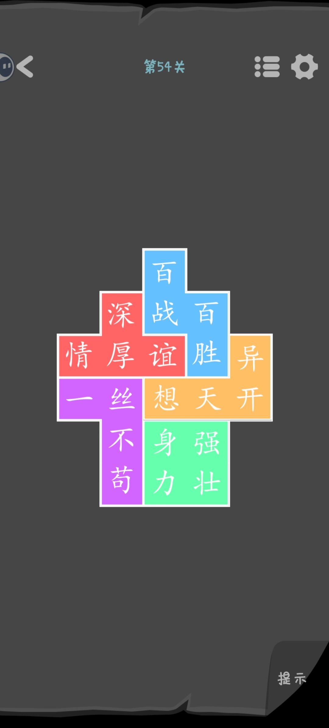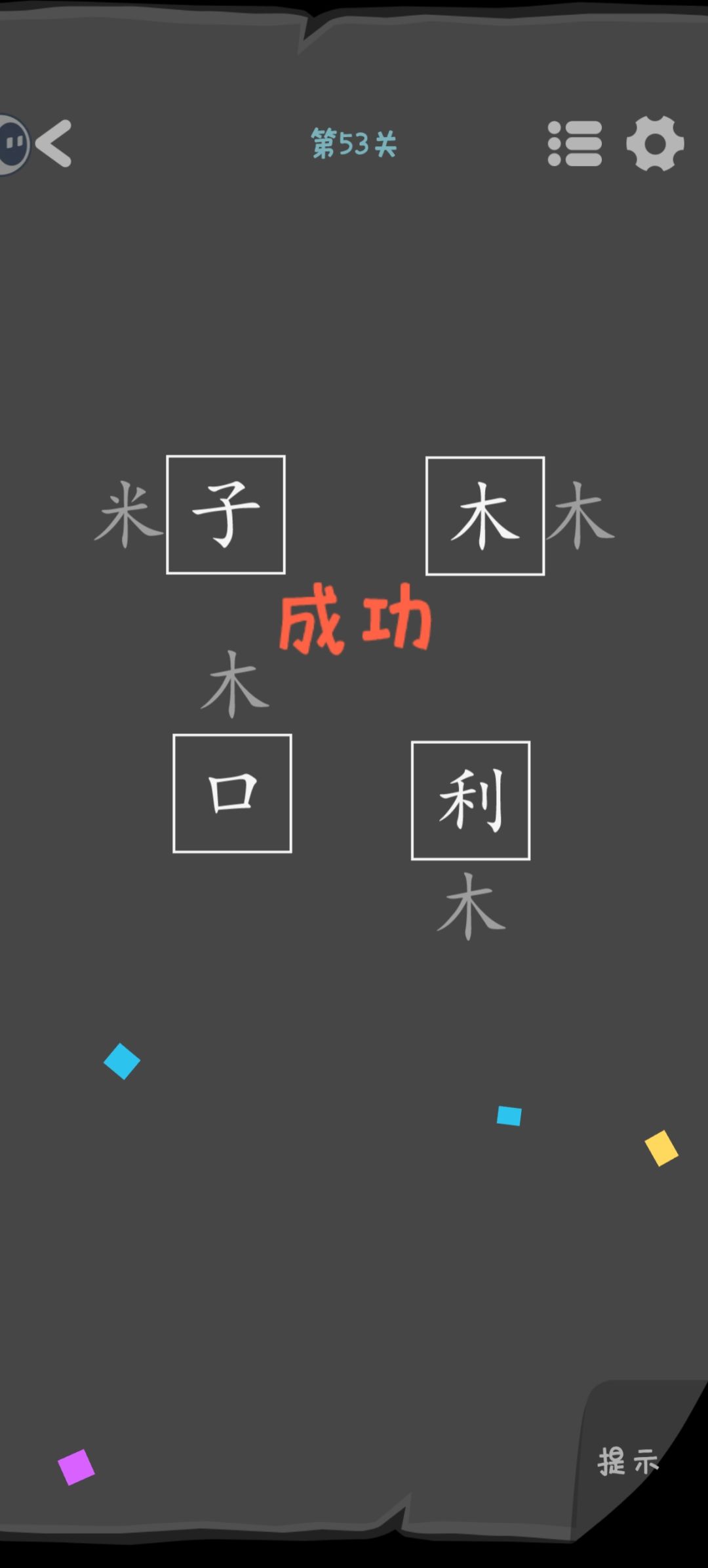 第44关 白色实心的是要放在横框里的汉字。