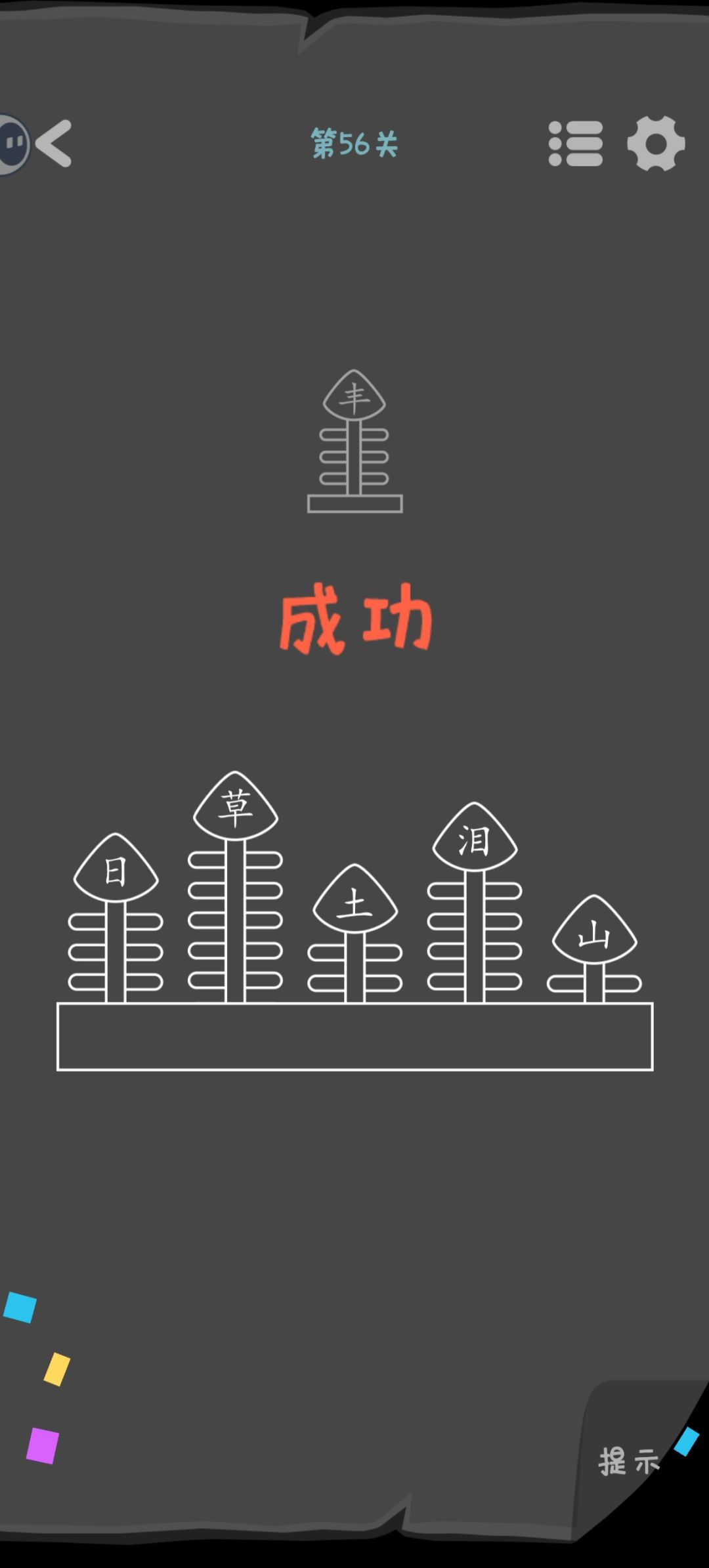 第56关 观察文字有几条“横”就露出来几条横杠。