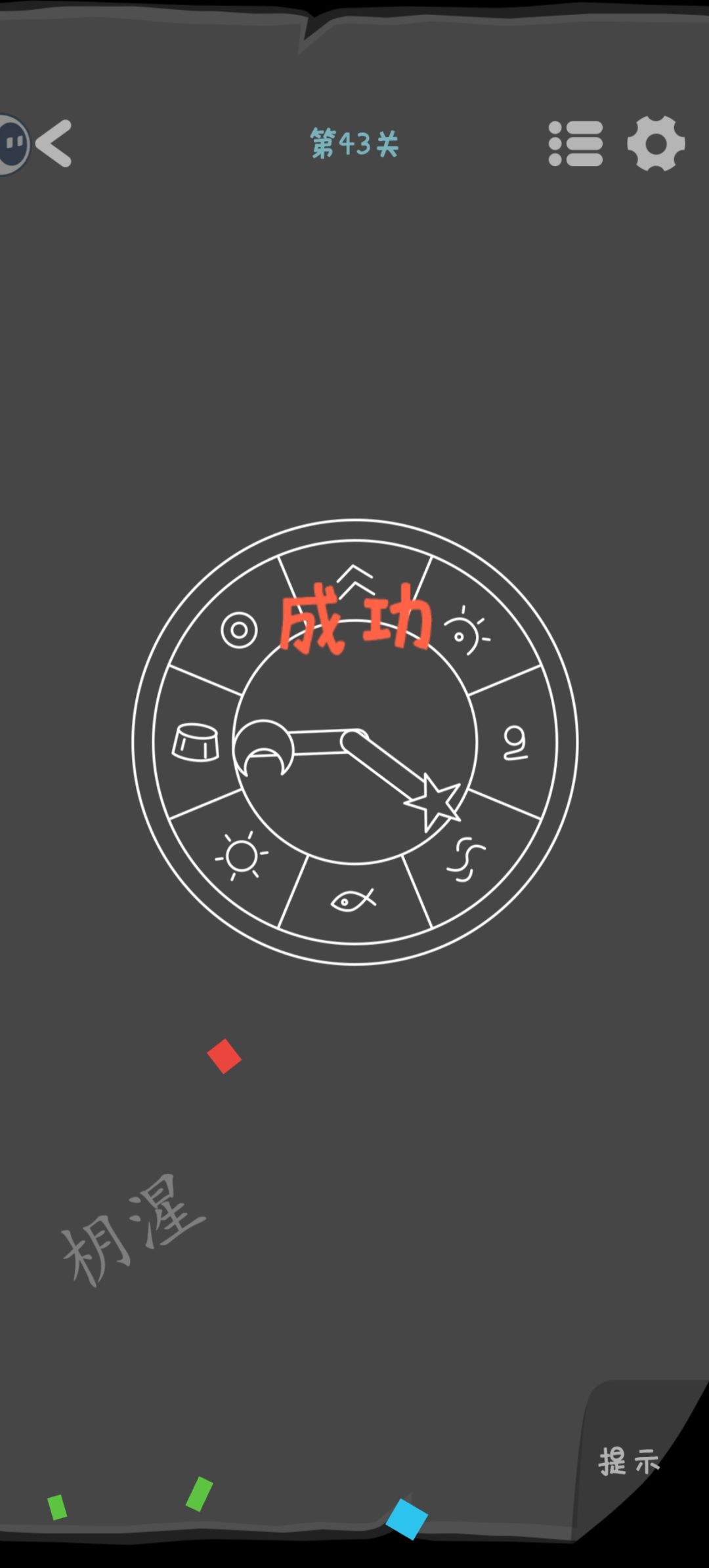 第43关 根据左下角的文字线索,“月”指向“木”,“星”指向“水”。