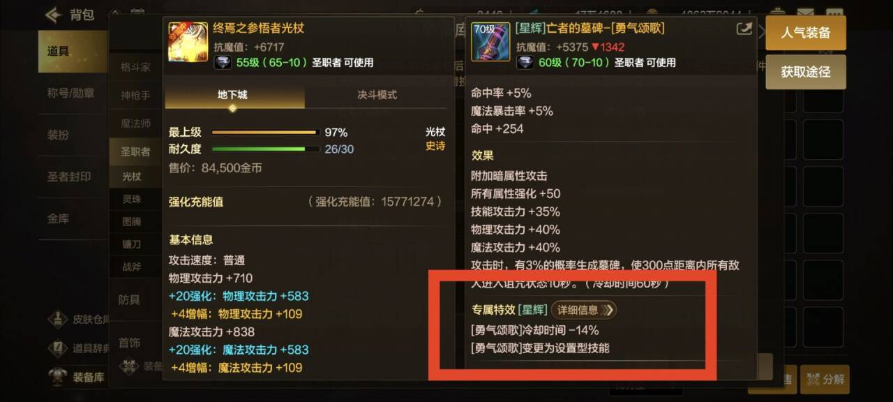 (3)镇魂曲、精炼类型装备时的侧重选择