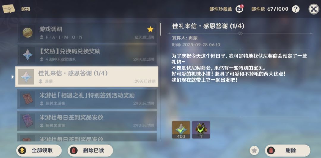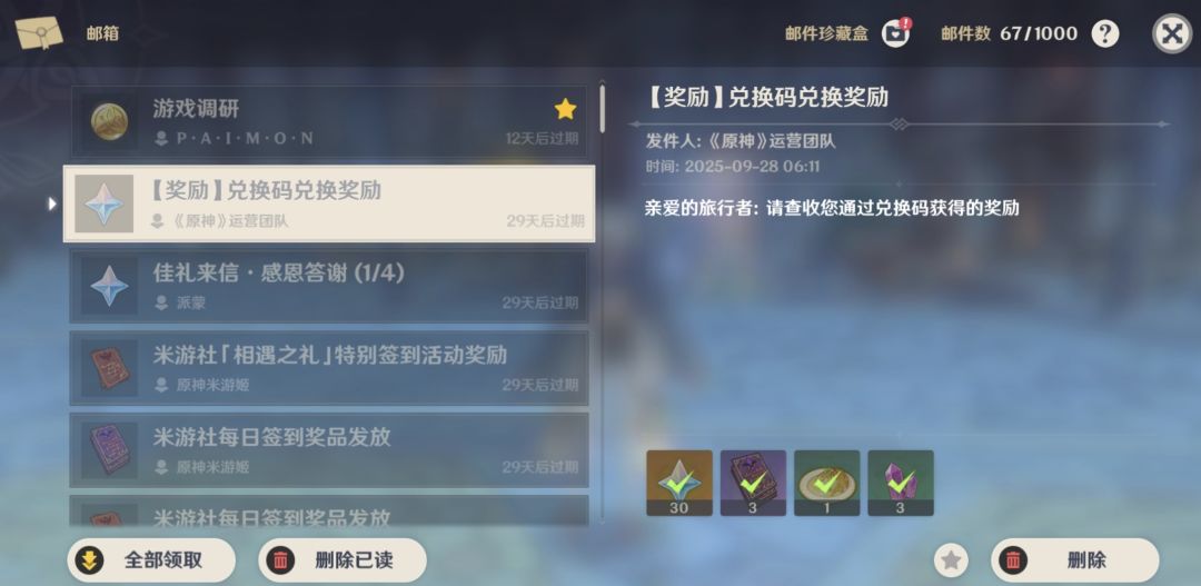 邮件里还躺着400百原石大家记得领取