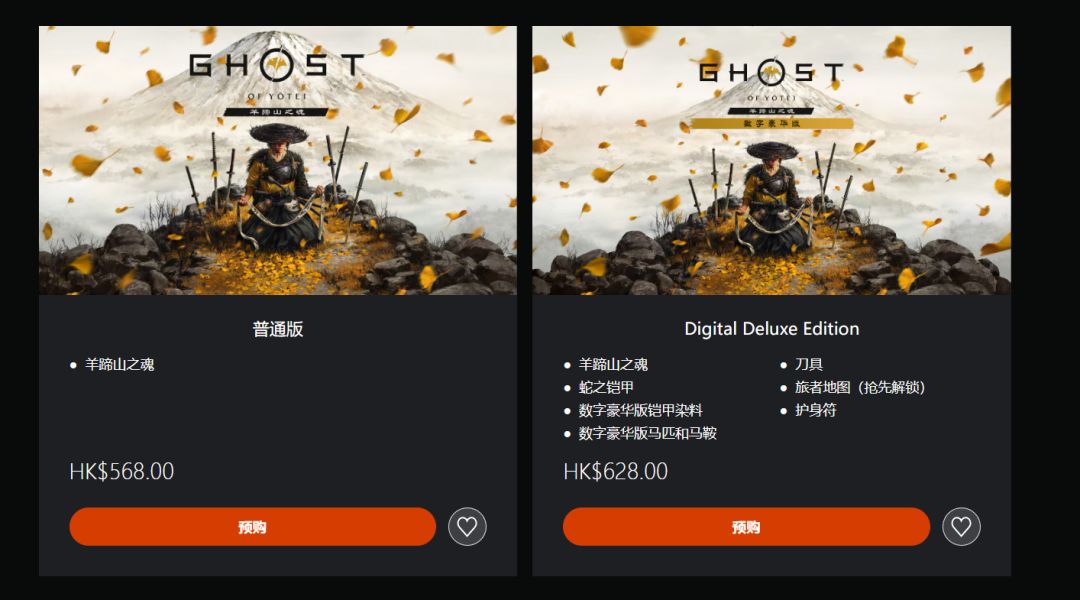 - 数字版:标准版 568 港币(约 520 元)含游戏本体;豪华版 628 港币(约 575 元),额外赠送铠甲涂装、专属马匹与马鞍、纪念刀具、抢先解锁的旅者地图及护身符。