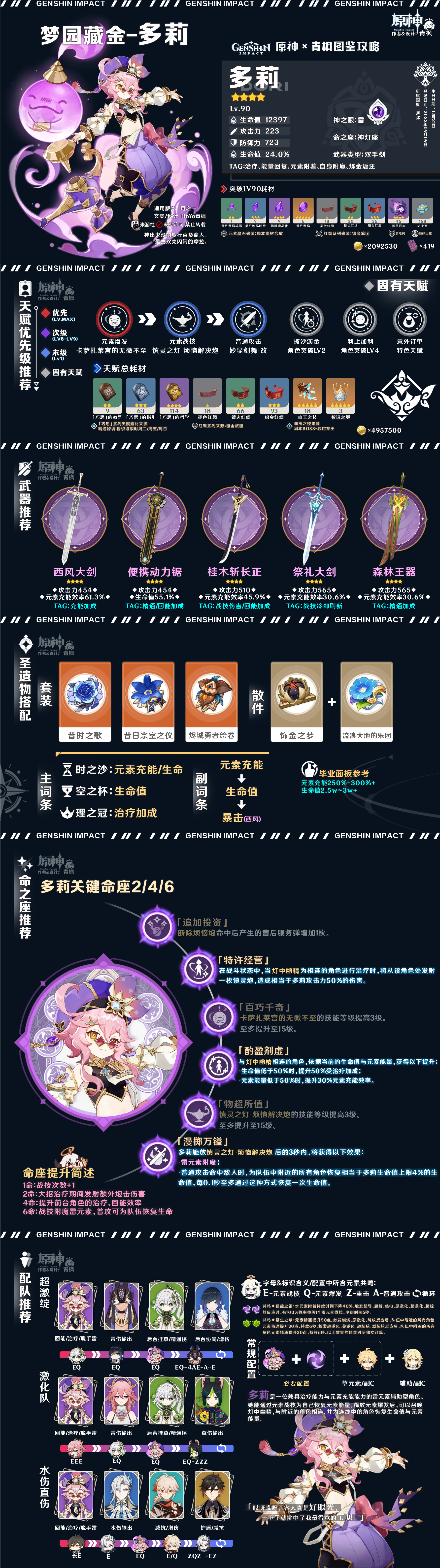 本期为大家整理「多莉」的角色攻略,她是神出鬼没的旅行百货商人,最喜欢亮闪闪的摩拉。接下来以图鉴的形式简要解析「多莉」的养成参考,帮助大家快速了解角色及后续培养方向;