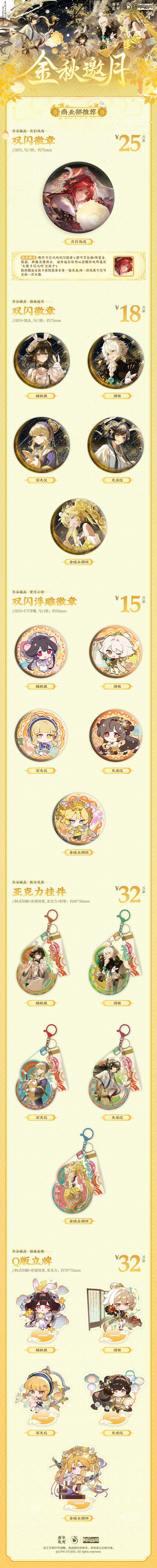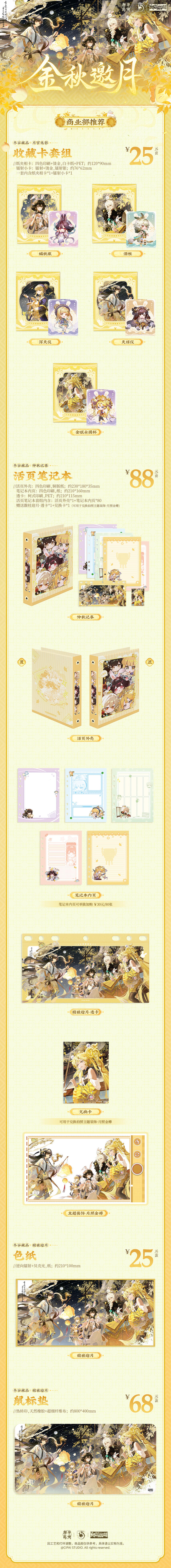 金秋邀月系列为1.5周年纪念限定周边,该系列产品为限时不限量预售。预售订单发货完成之后可能会有部分款式少量余量上架,余量售完即止不再复刻,还请收藏家们悉知~