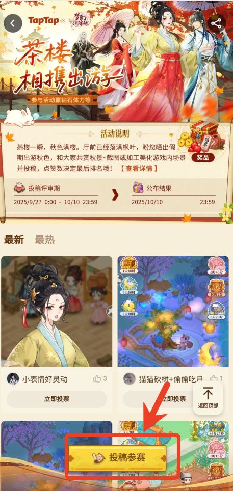 在梦幻消除站TapTap论坛中,带话题#茶楼相携出游 并围绕主题发布图文贴参与投稿。比赛结果于活动结束后在活动页公布。