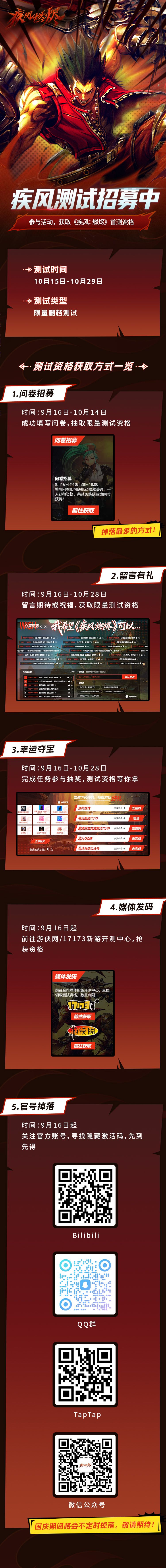 问卷填写仍是获取资格的主要途径,也是我们投放资格最多、最集中的渠道。只需几分钟填写你的想法,就有很大机会拿到珍贵的测试资格!除了官方网站外,大家也可以前往 TapTap《疾风:燃烬》游戏页面,点击“申请资格”参与填写问卷(两个渠道提交一次即可)。