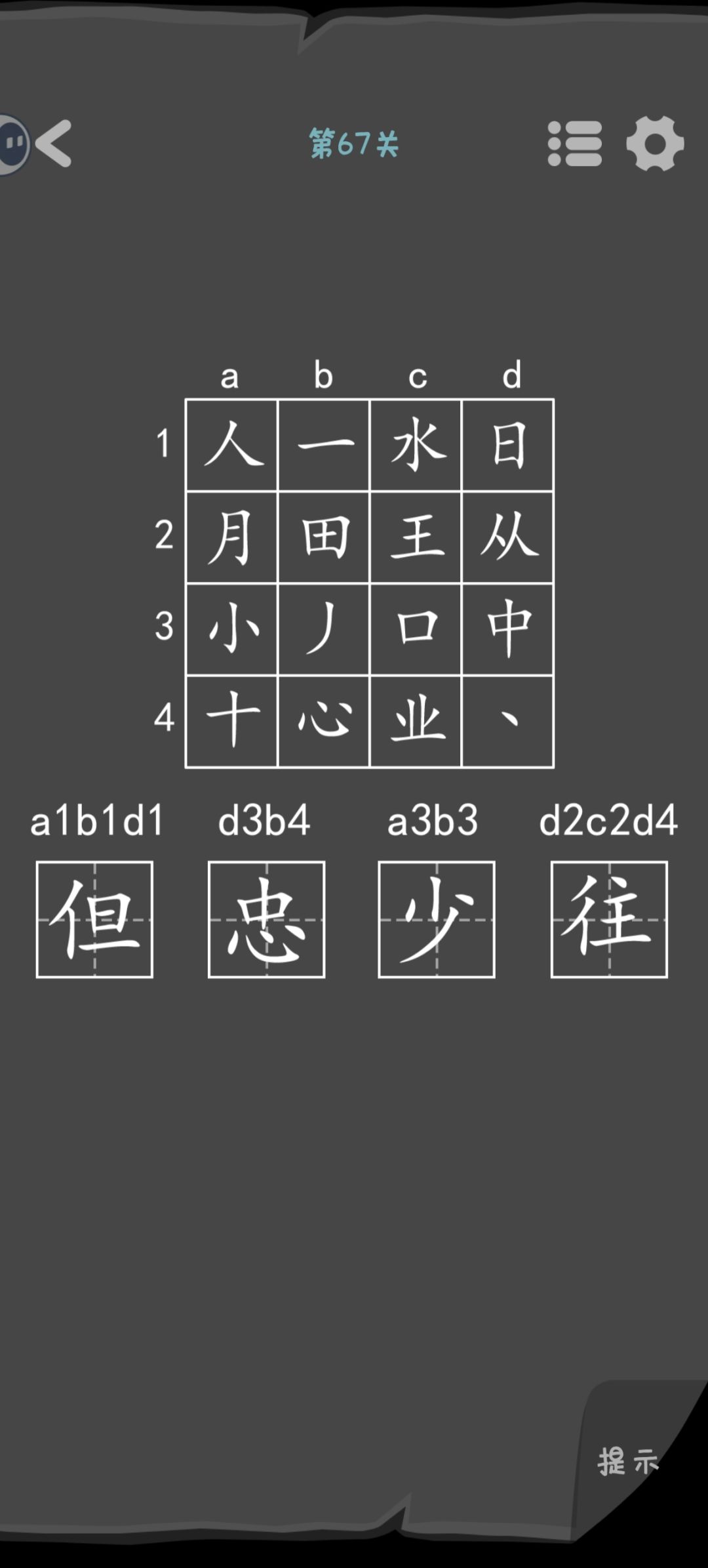 第67关 白给。根据坐标包含的文字组成一个新的汉字。