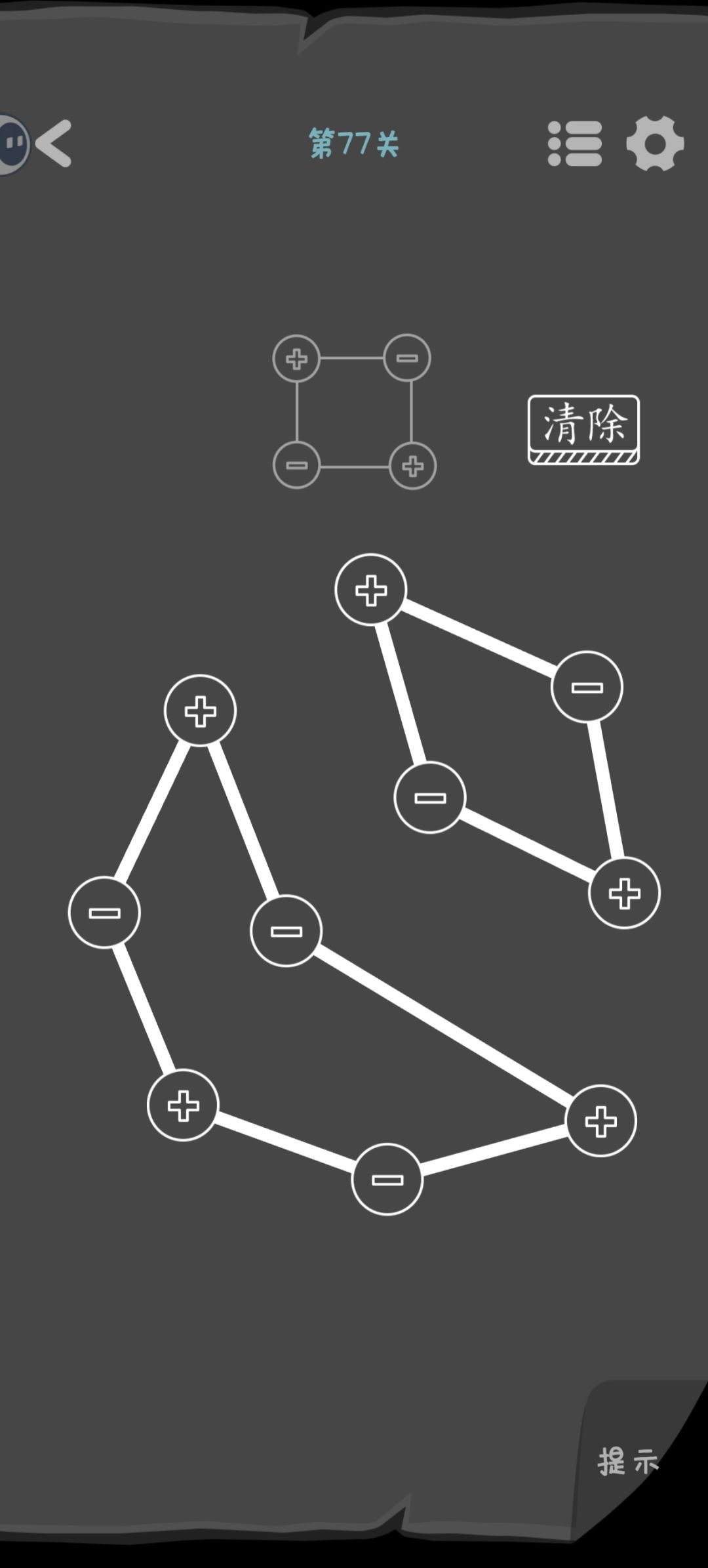 第77关 按照“加减加减”这个顺序连,但是一定是个封闭图案。避免出现红线。
