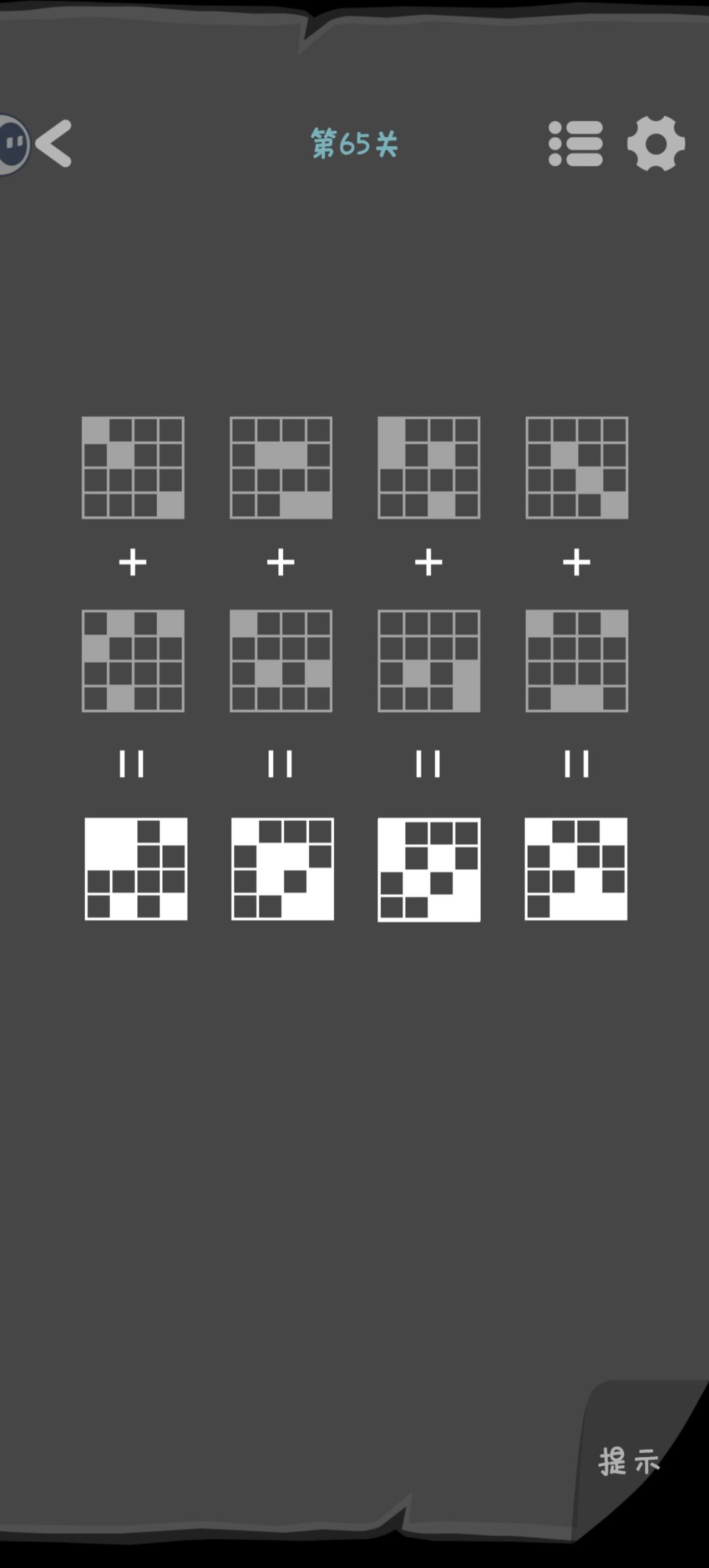 第65关 把第一幅图和第二幅图叠在一起就是第三幅图。
