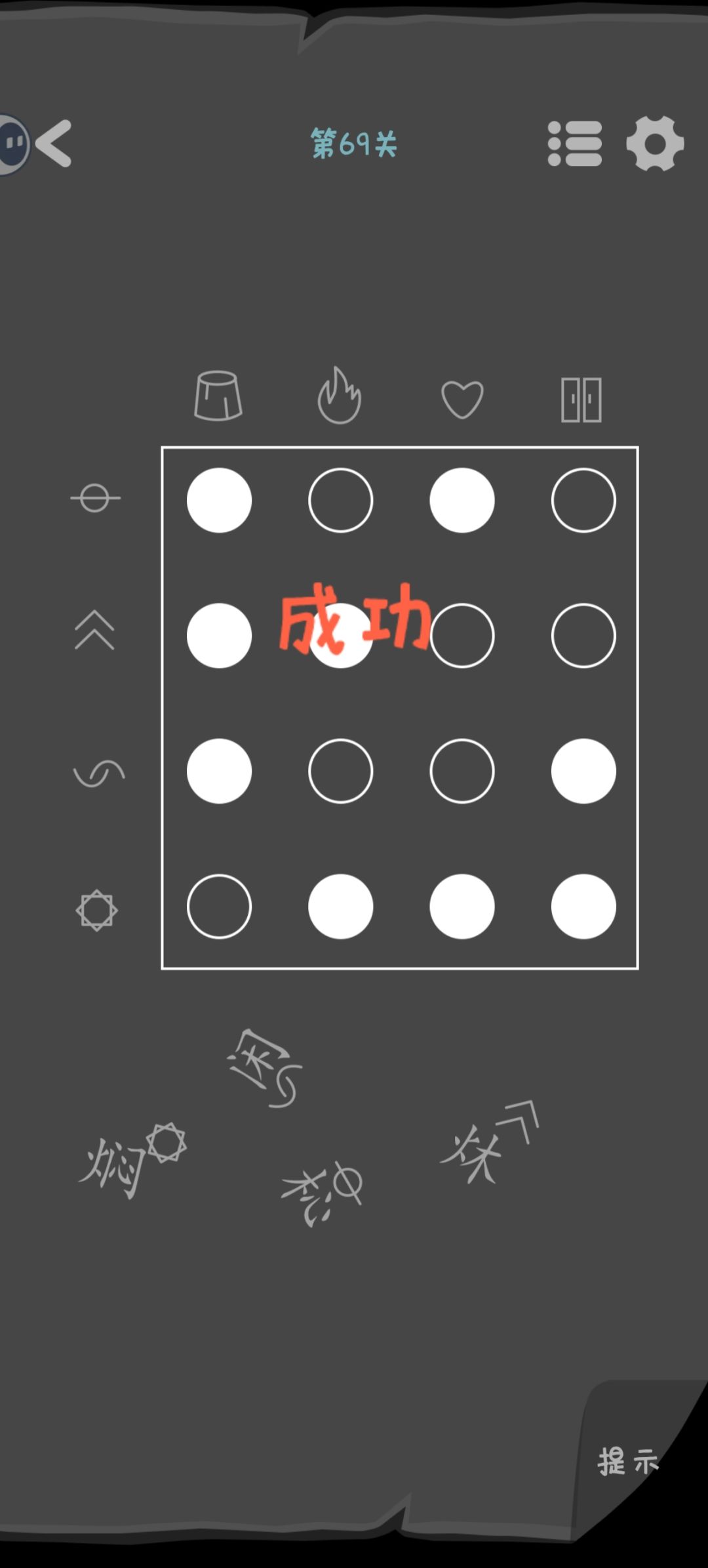 第71关 白给。有几个点就表示是第几行的文字提示,然后调整按钮方向得到所有文字。