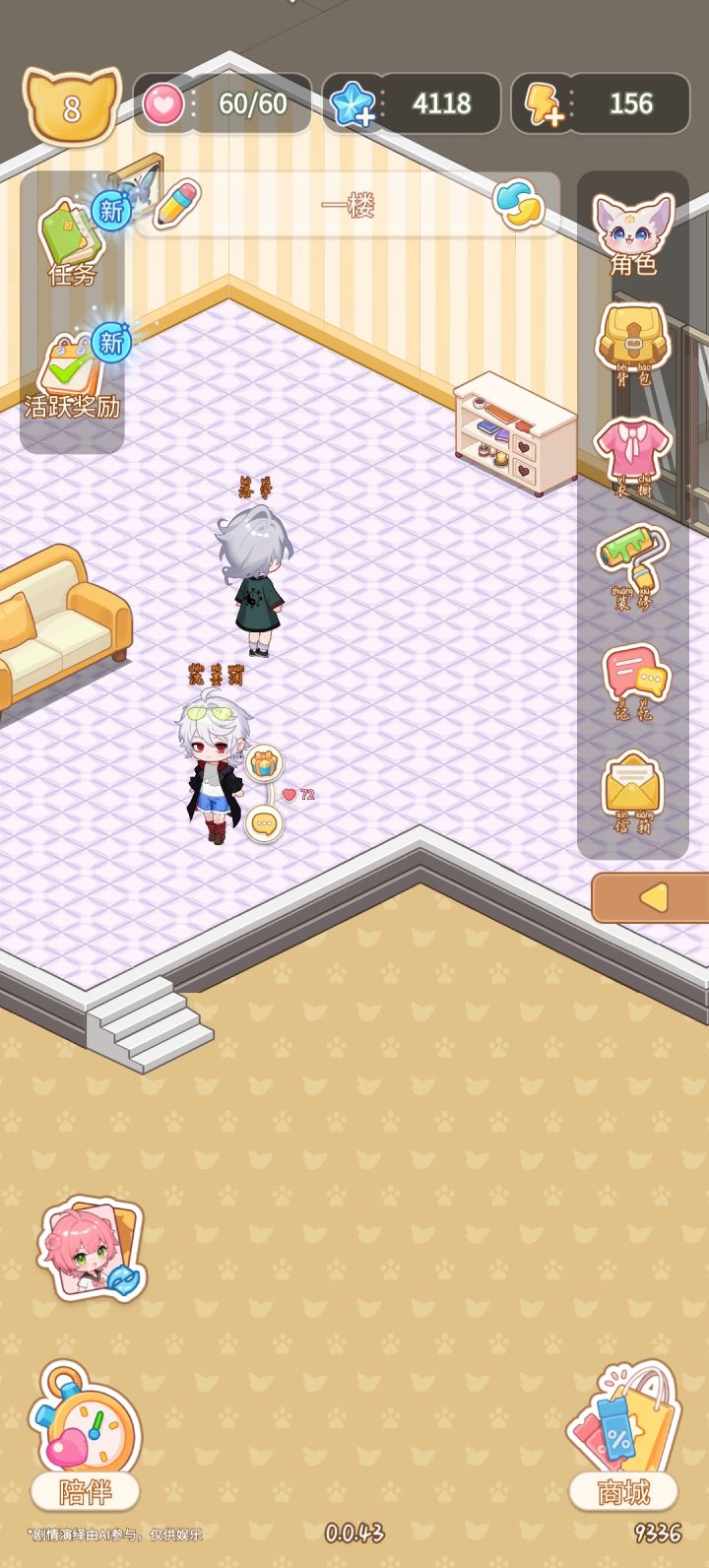 1. 强化OC互动体验,提升养成感:希望增加OC间对话式互动场景,例如牵手、拥抱等肢体动作,搭配更丰富的表情变化,让互动摆脱“人机对话”的生硬感,看的感觉比较无聊,强化“养OC”的沉浸体验。同时,建议继续保持对零氪金玩家的友好度,保留零充值也能顺畅游玩的优势;若后续推出更精美的服装或家居,可通过微充值模式吸引玩家,平衡不同付费群体体验。