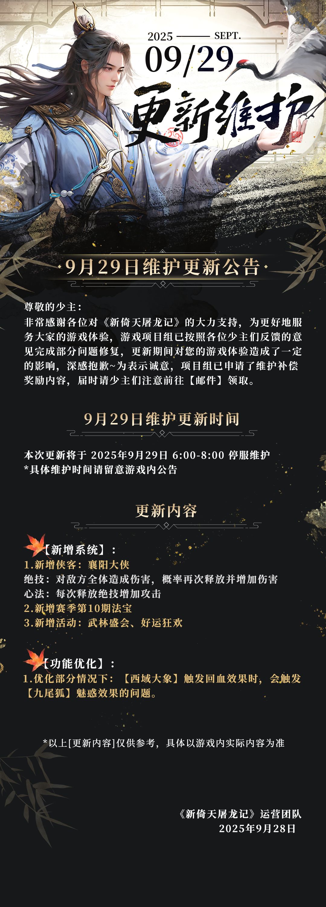 9月29日维护更新公告