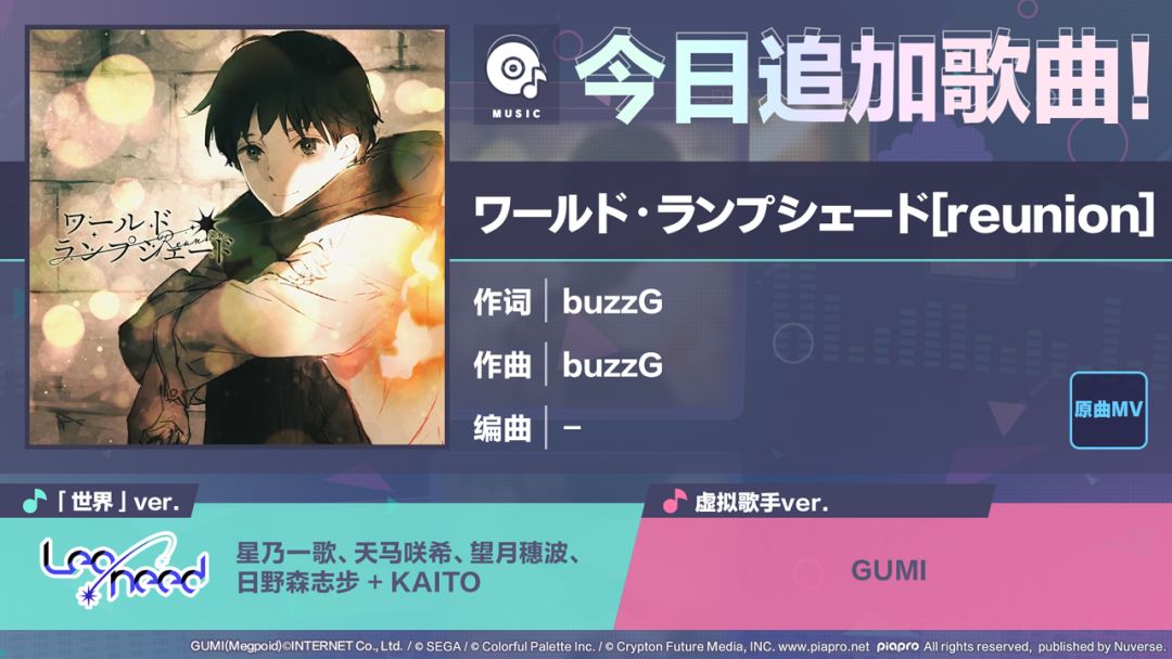 9/29 15:00起,追加歌曲《ワールド・ランプシェード [reunion]》!