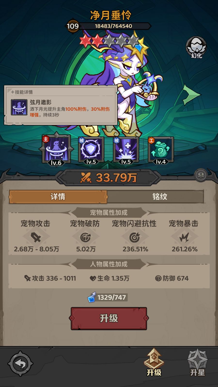 森林视界:给玩家加大量防御,还能概率眩晕,是个不错的宠物,某些首领输出过高而玩家能溜怪的,可以带它,增加保命的几率。可以在主线下第三层/第六层前替换净月用。
