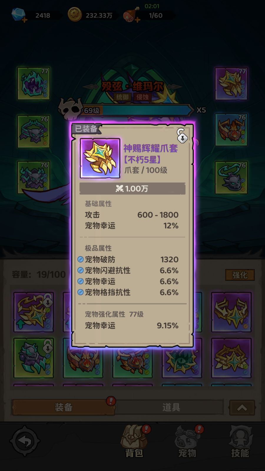宠物装备系统,给人物的属性实在是少,也没所谓先提升宠物攻击力暴击率什么的,平均升就行。