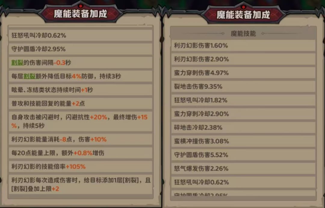 魔能装备洗利刃幻影的消耗,对于割裂玩法很重要。很多职业玩起来时会不连贯、有涩感,一般都是因为回怒方面不够及时。