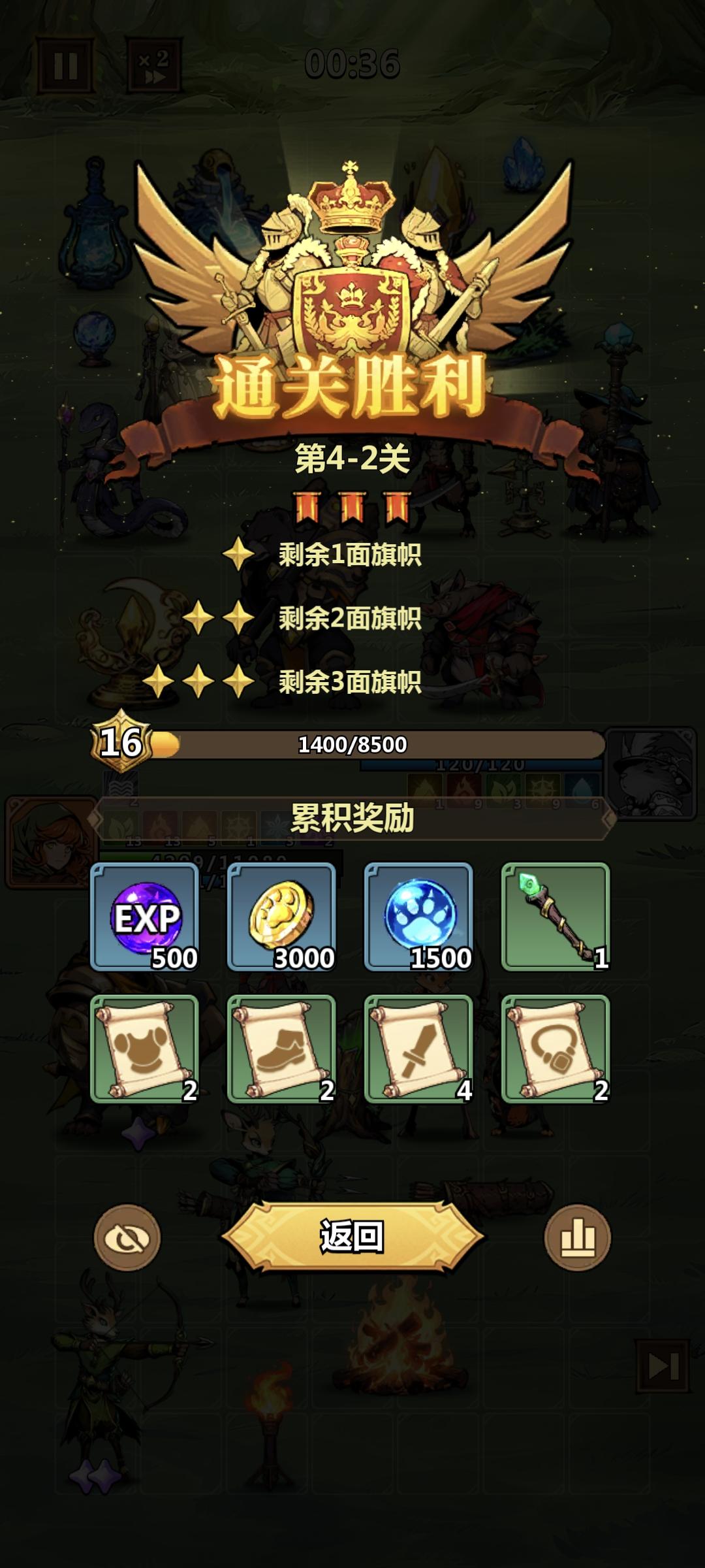 第四章半圆满落幕,后续再补吧。接下来又是无聊的扫荡时间,然后把免费竞技场,金币本打一打。除了抽空上来领一下挂机奖励和扫荡,又是等明天了。
