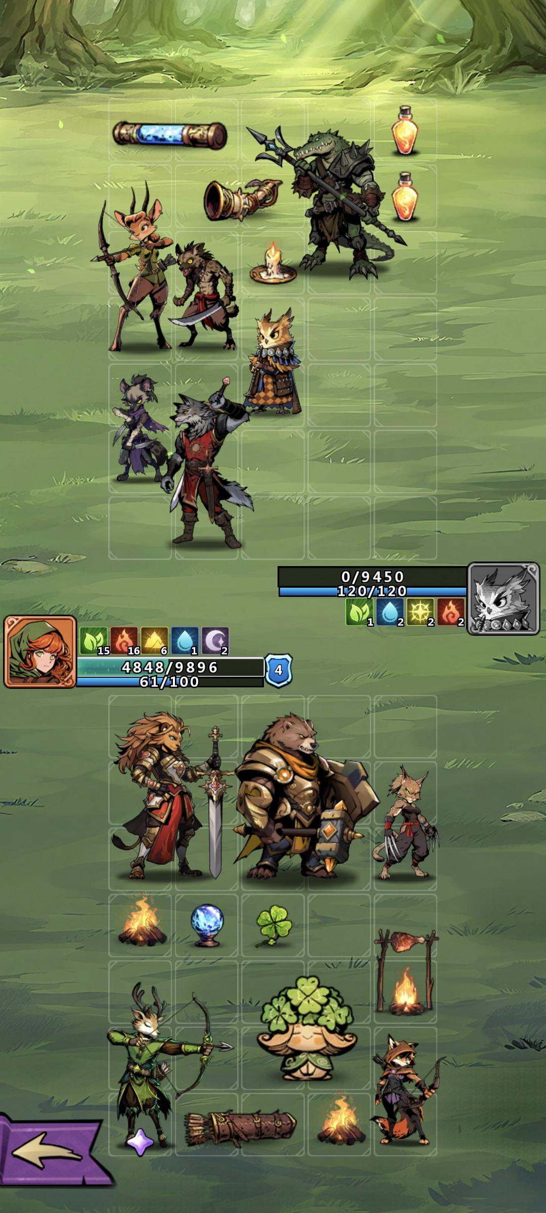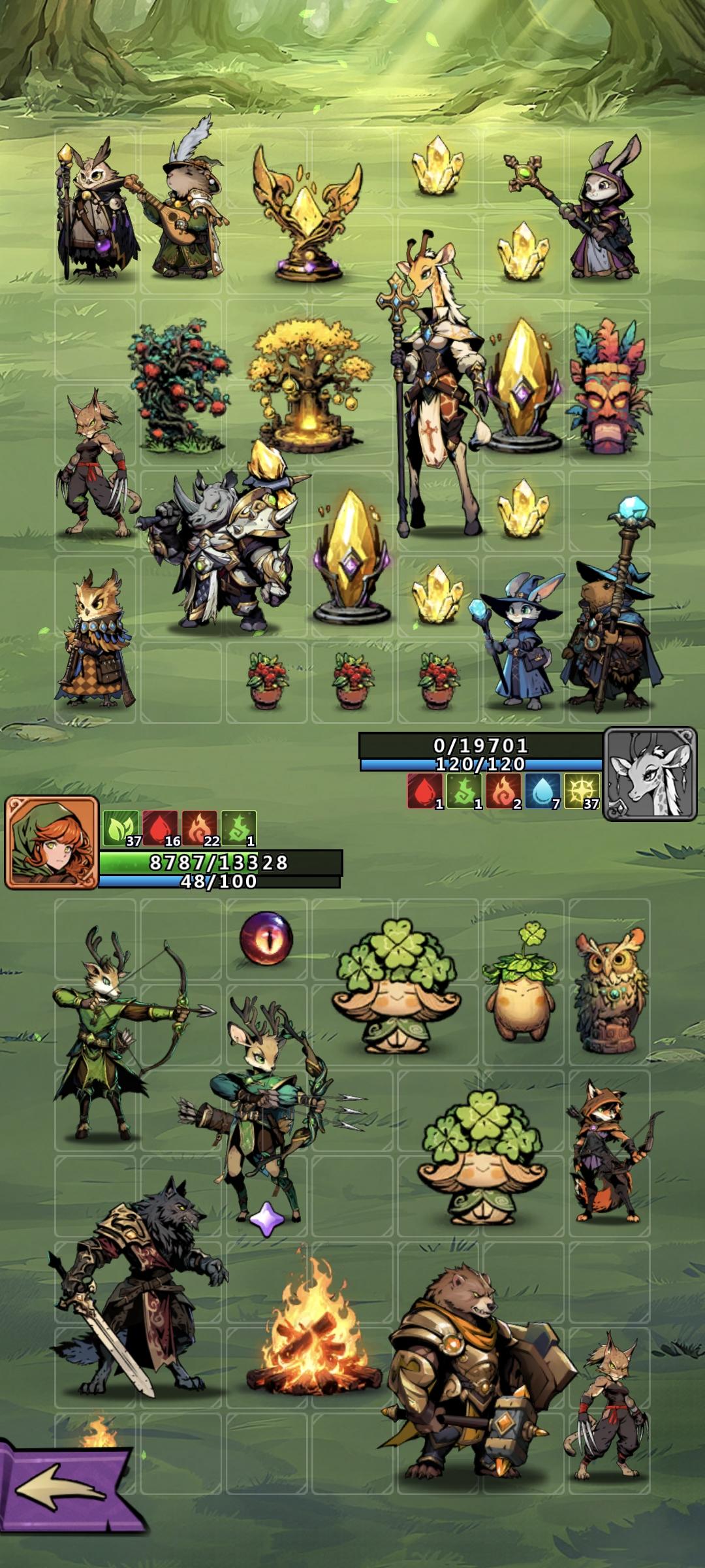 第四天21级半,第五章打完,兽域第五关。现在的建议是光队和草火队都可以玩,不过后面需要刷红遗物光树去减少负面状态。兽域是前面几关很简单,直接等压过就行。